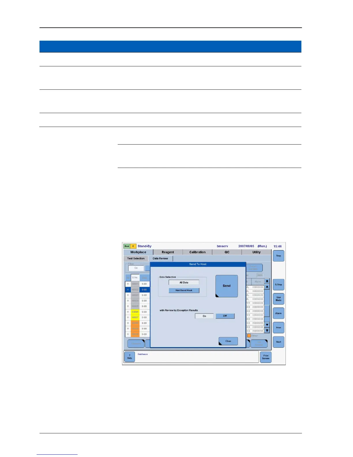 option with Review by Exception Results on Send to Host window shown