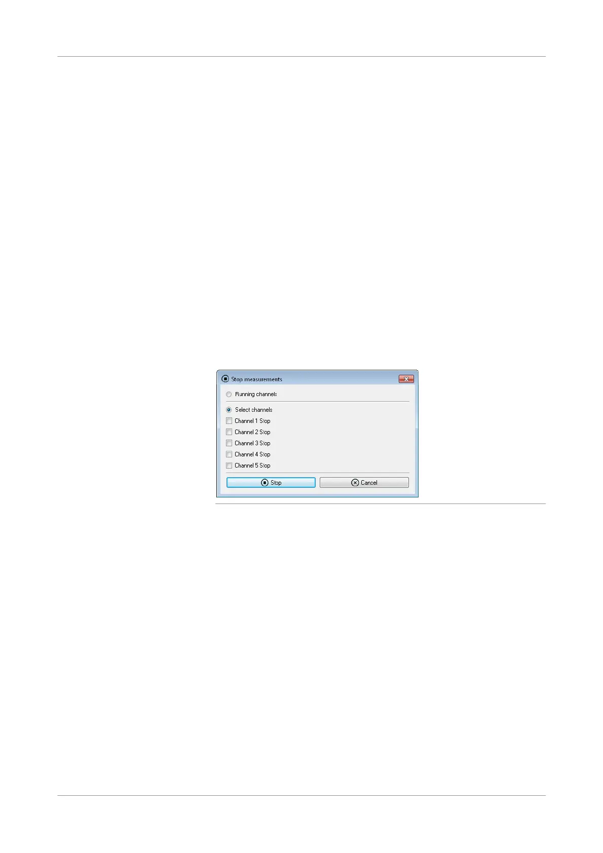 The Stop measurements window is displayed.