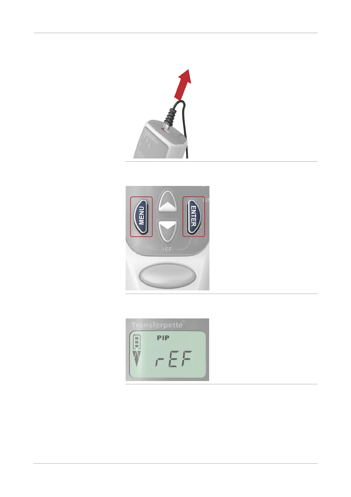 On screen, the rEF text indicates that the pipette is in reference run mode.