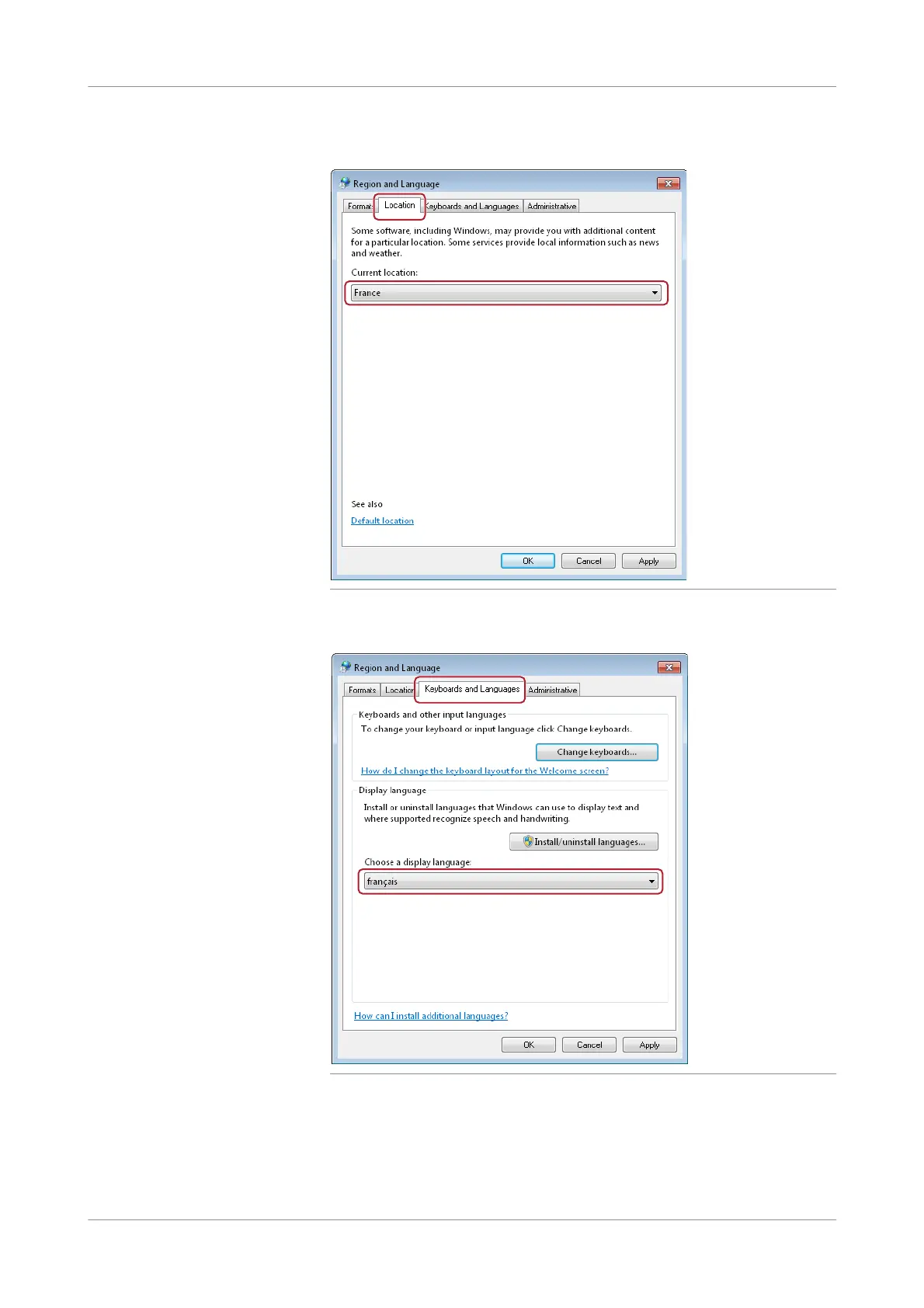 In the Keyboards and Languages tab, select français as display language.