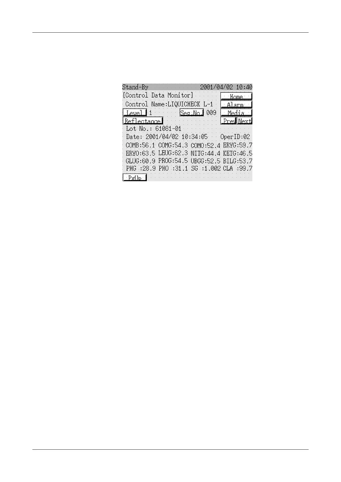 Figure C-9 Control Data Monitor screen (reflectance values)