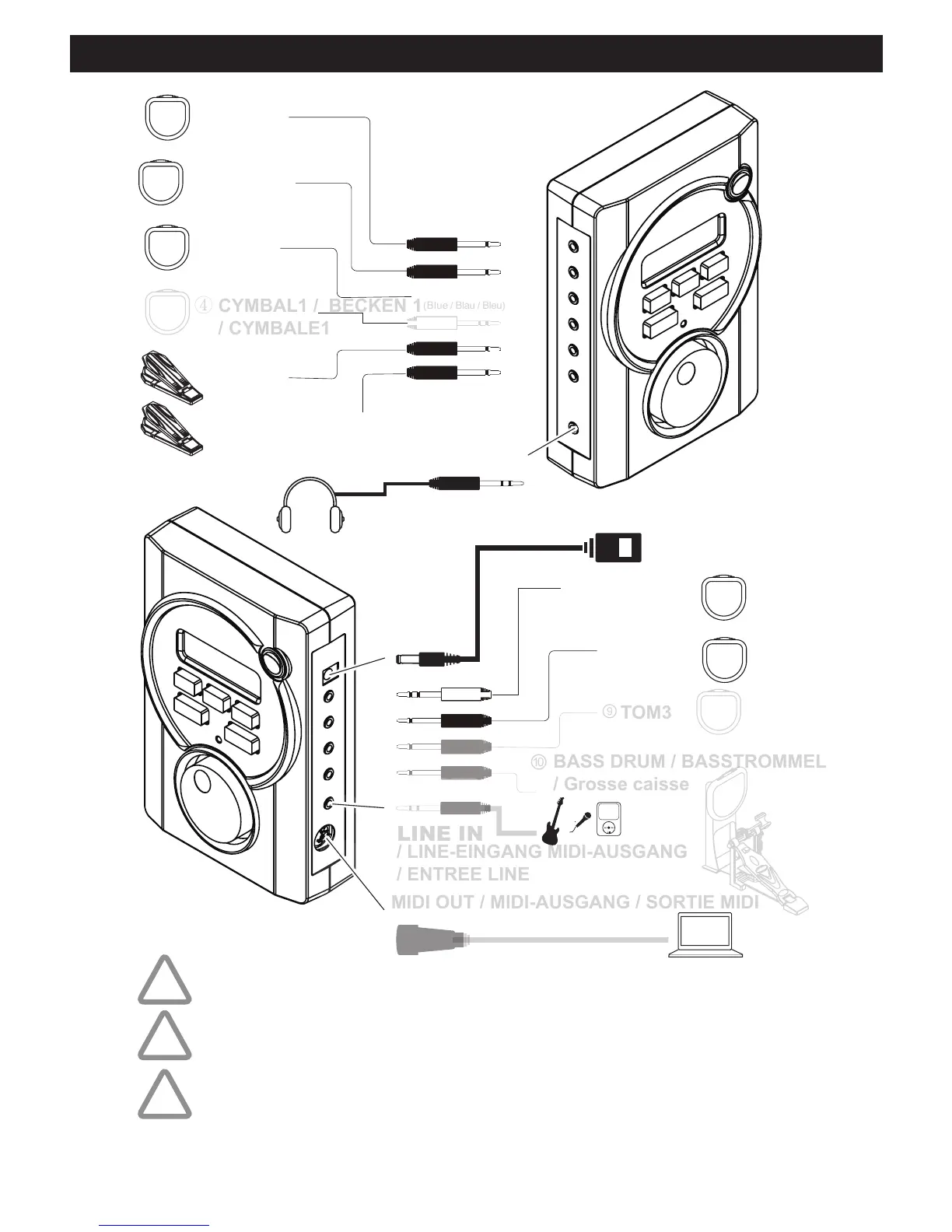 ④ CYMBALE1 et ⑦ CYMBALE2 nécessitent l'utilisation de câbles audio Stéréo