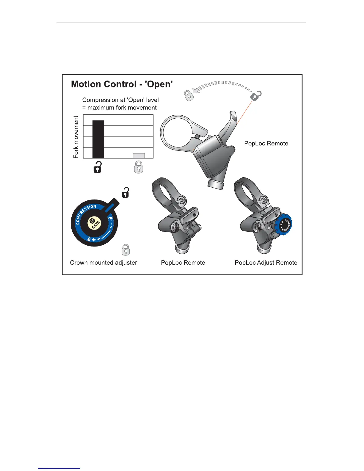 • For PopLoc equipped forks, press the ‘Unlock’ release button on the remote (as indicated