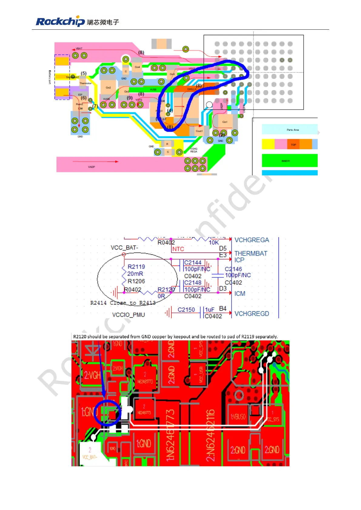 separated from GND copper by keepout and be routed to pad of R2119 separately. ICP and