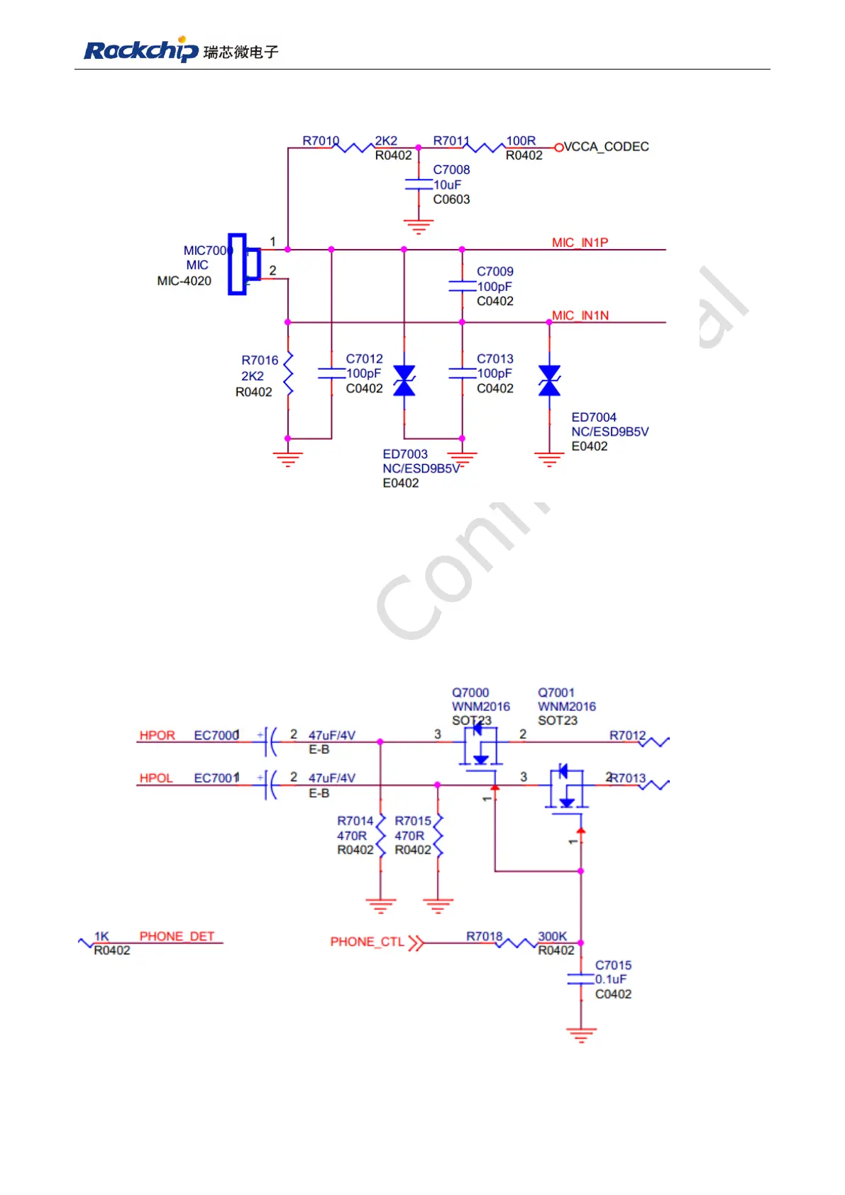 Divider resistors R7010, R7016 of MIC should be chosen based on electret microphone