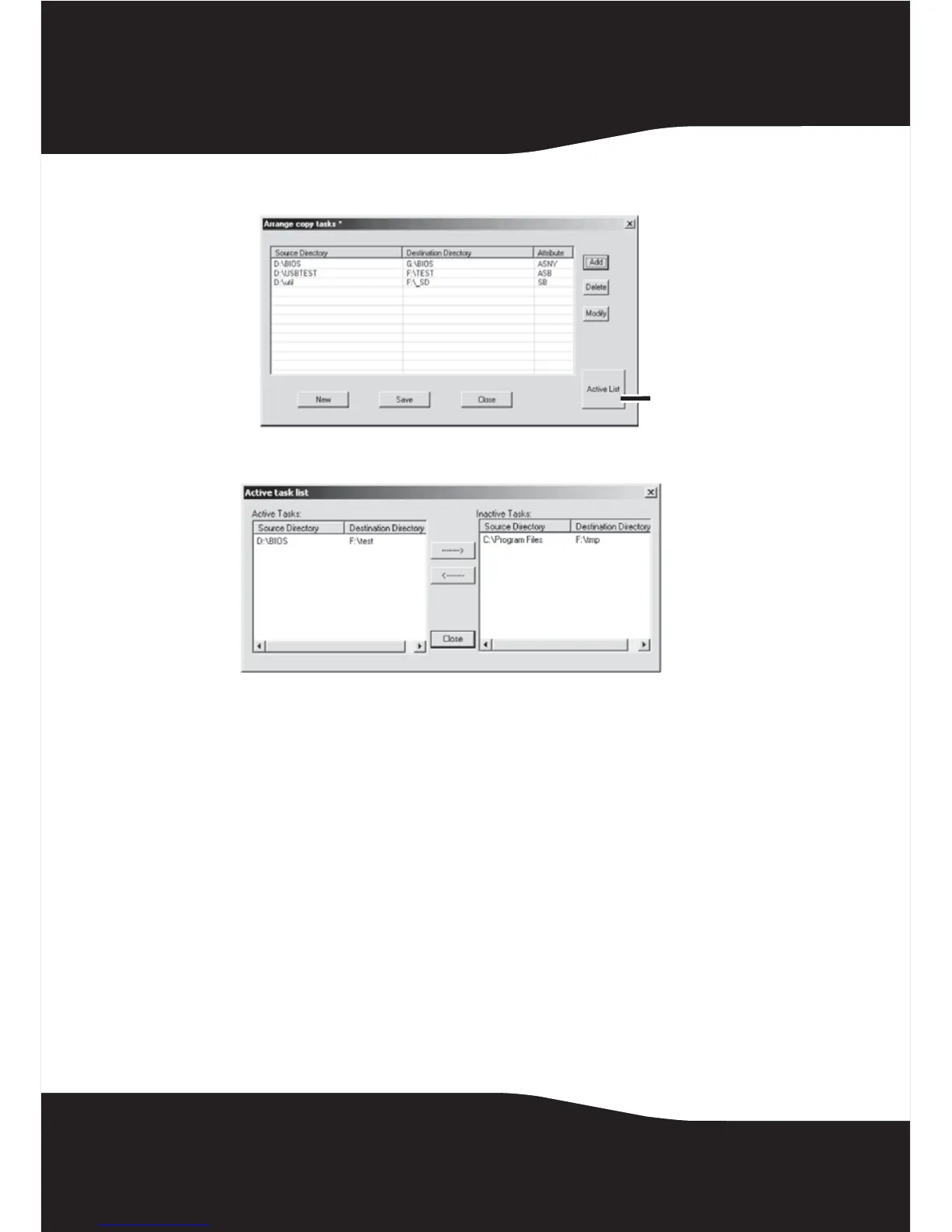 3 The windows shows an Active Tasks list and an Inactive Tasks list. Move