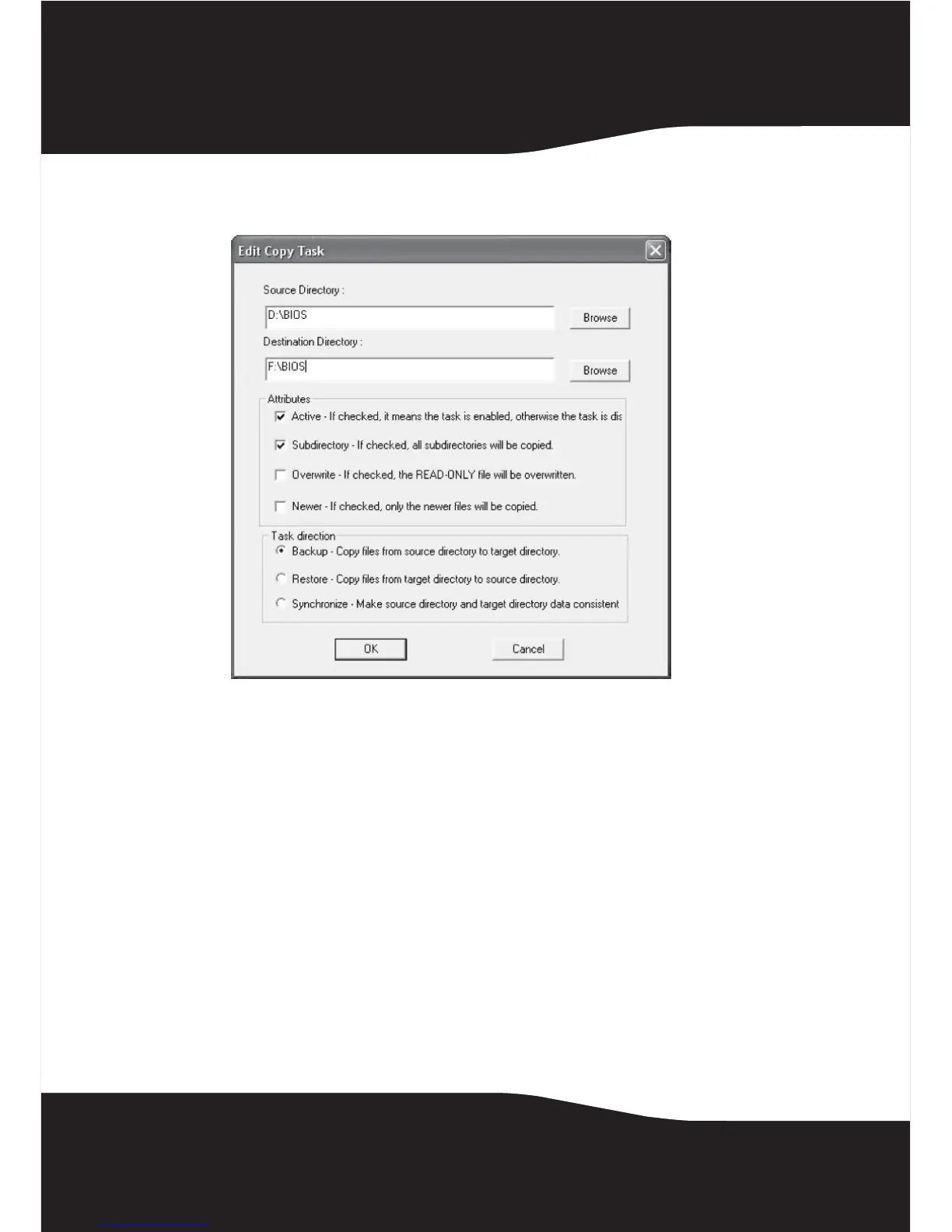 ventana Edit Copy Task (Editar tarea de copiado).
