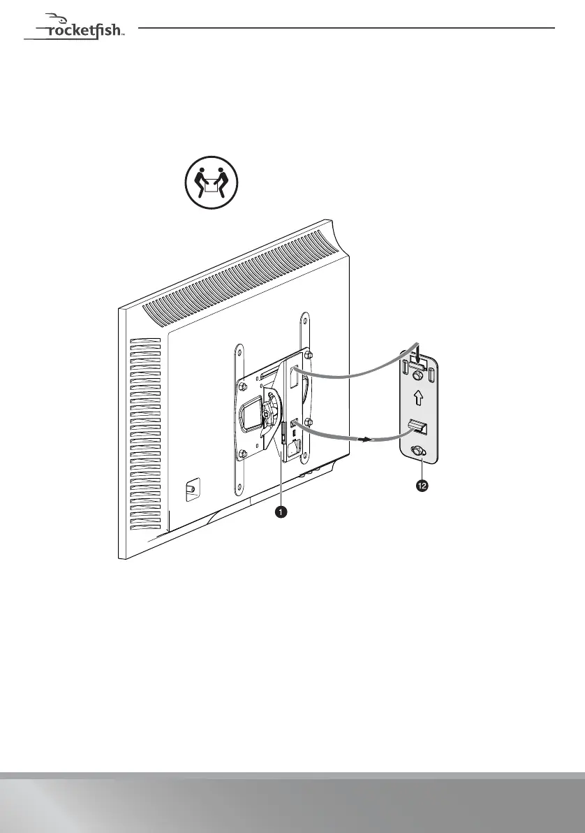 bracket (1) onto the wall plate, then lowering the TV until it clicks into