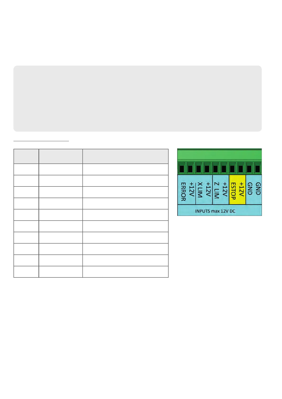 The input must be activated in the settings! Input for emergency stop signal. Connect a po-