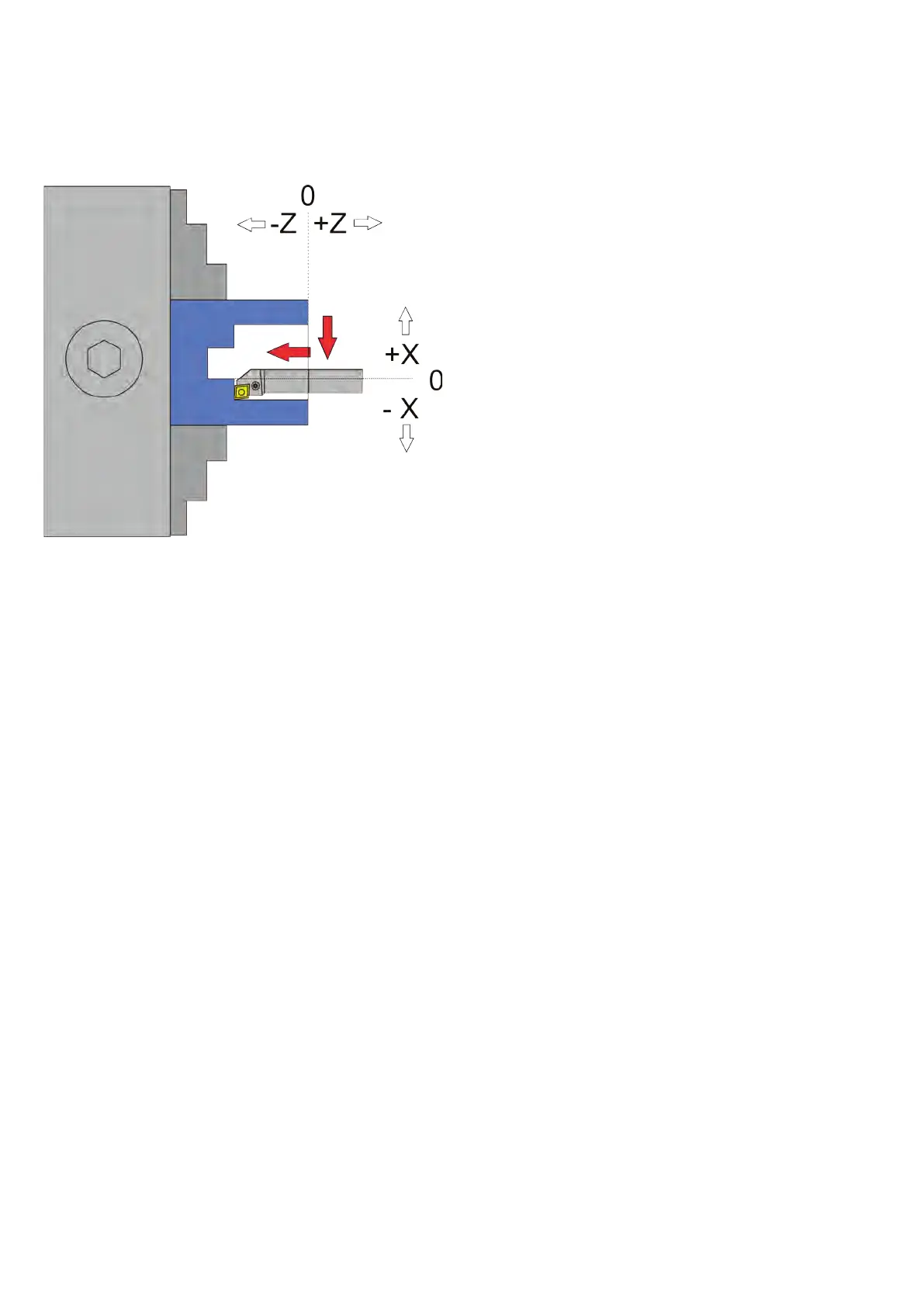ator! This is the other direction as with external turning! To zero the X axis, always ap-