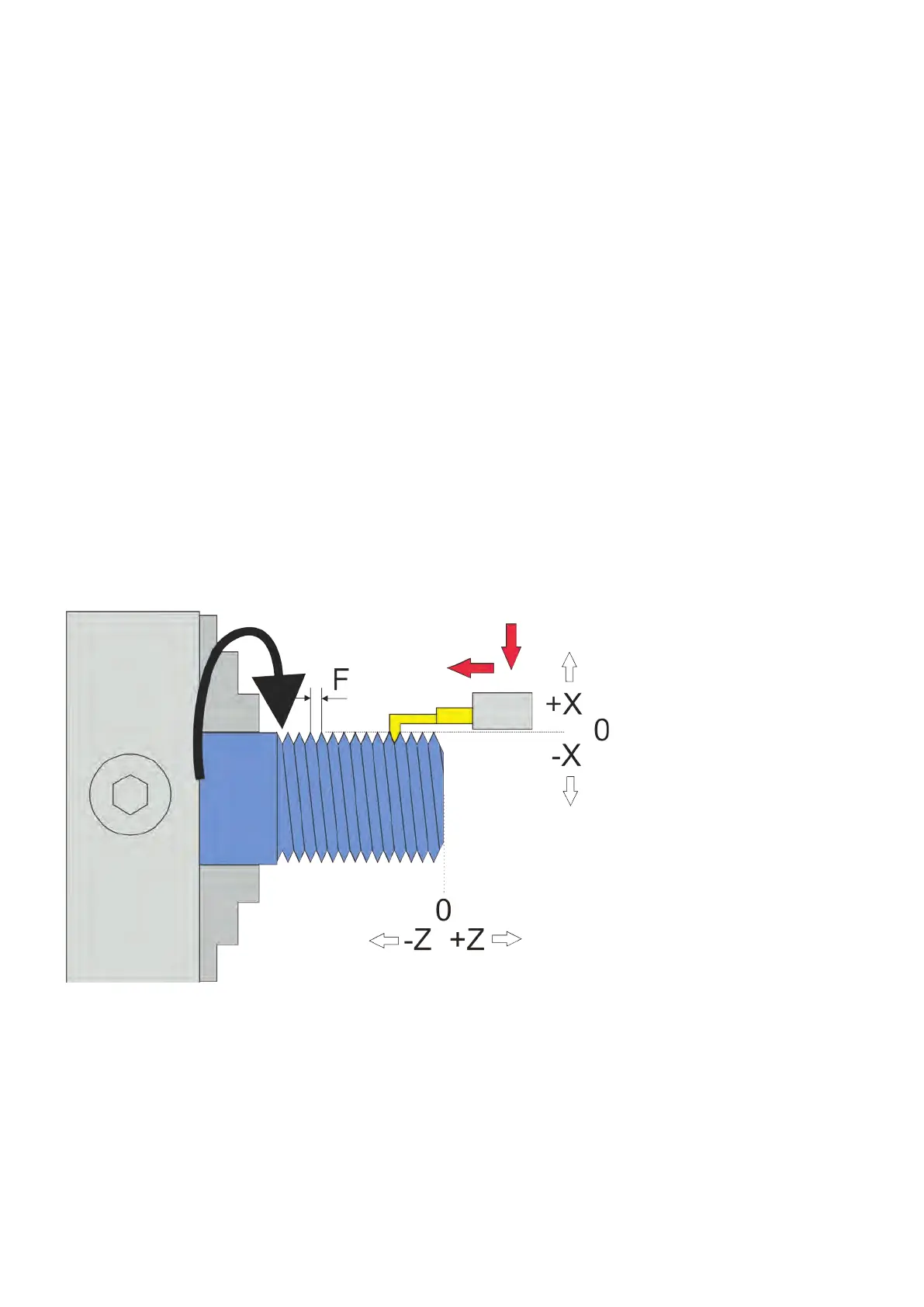produces an external thread. Somewhat tricky, but easy to do. The zero point in X must then of