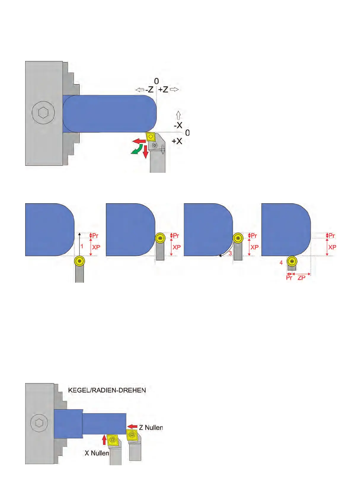 The cutting radius correction requires that this process is carried out beyond XP and ZP!