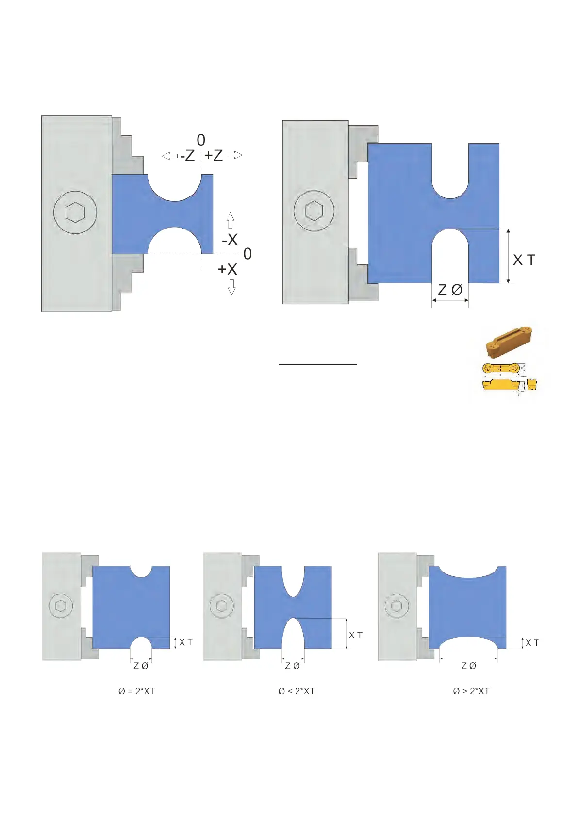the X direction! Circular grooves are cut by making the diameter in Z equal 2*XT (so to speak