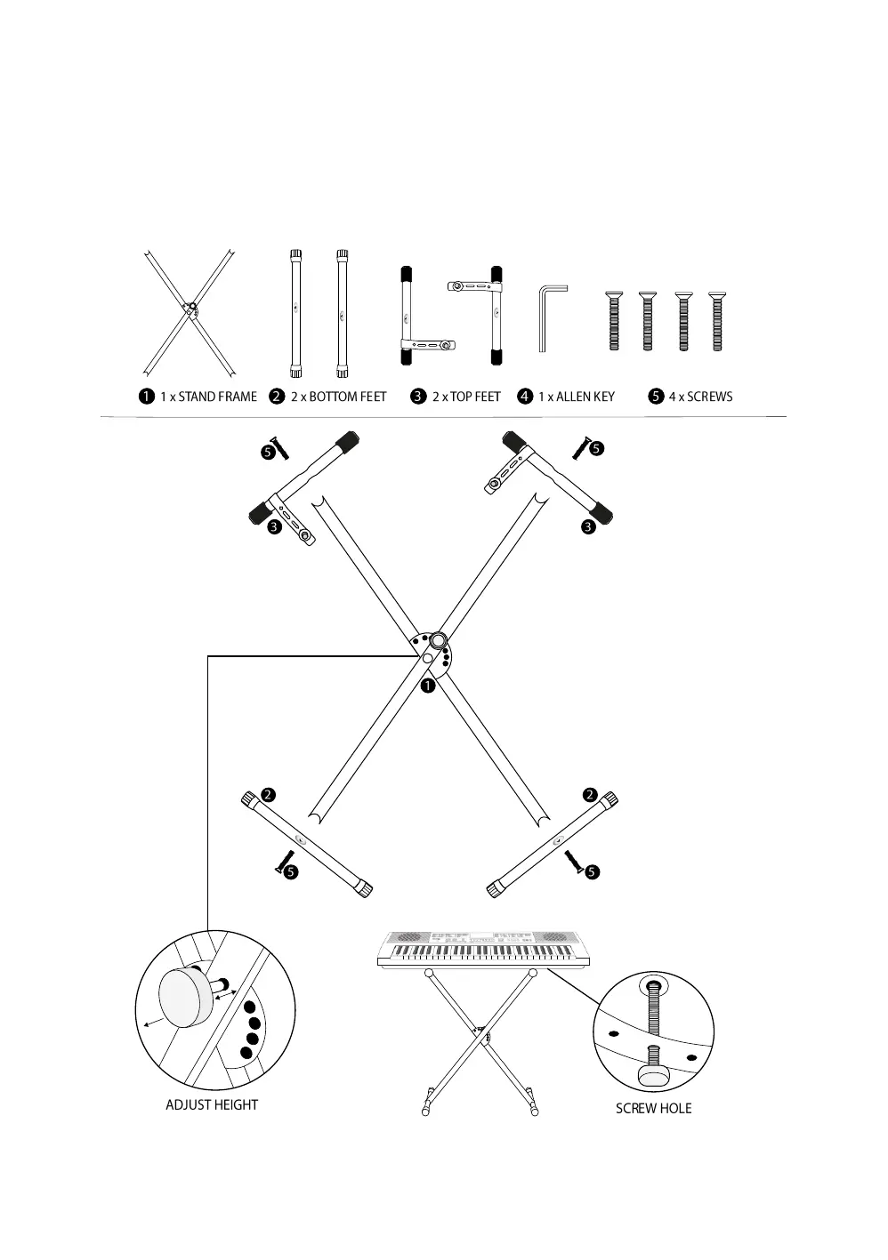Please first assemble the stand using the screws and allen key supplied. The keyboard can then be