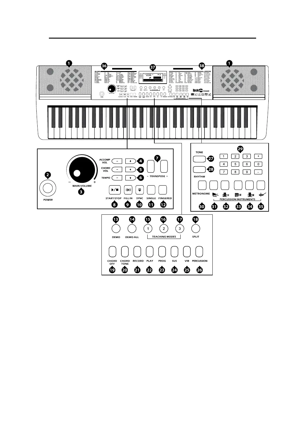 RockJam RJ660 - Controls, Indicators and External Connections; Front Panel