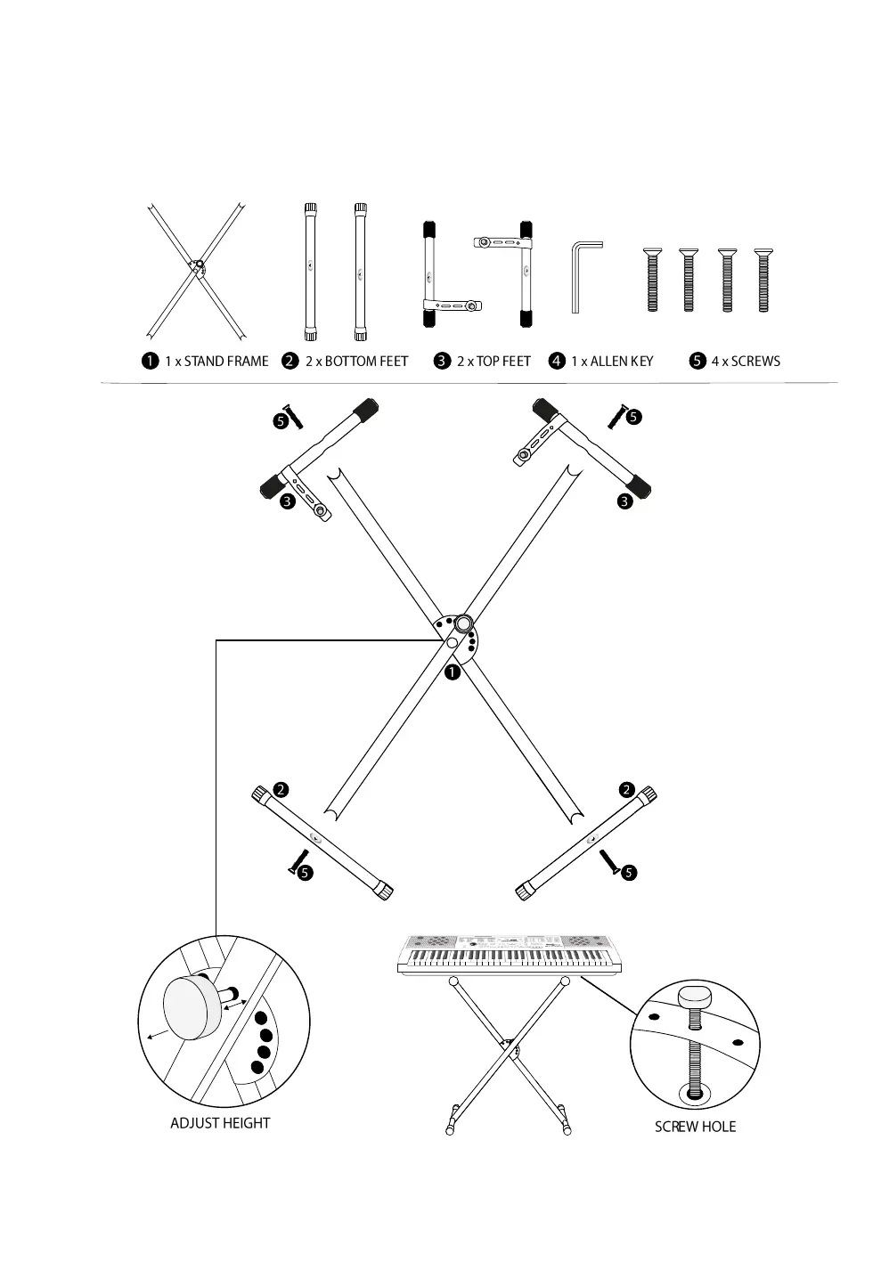 Please first assemble the stand using the screws and allen key supplied. The keyboard can then be