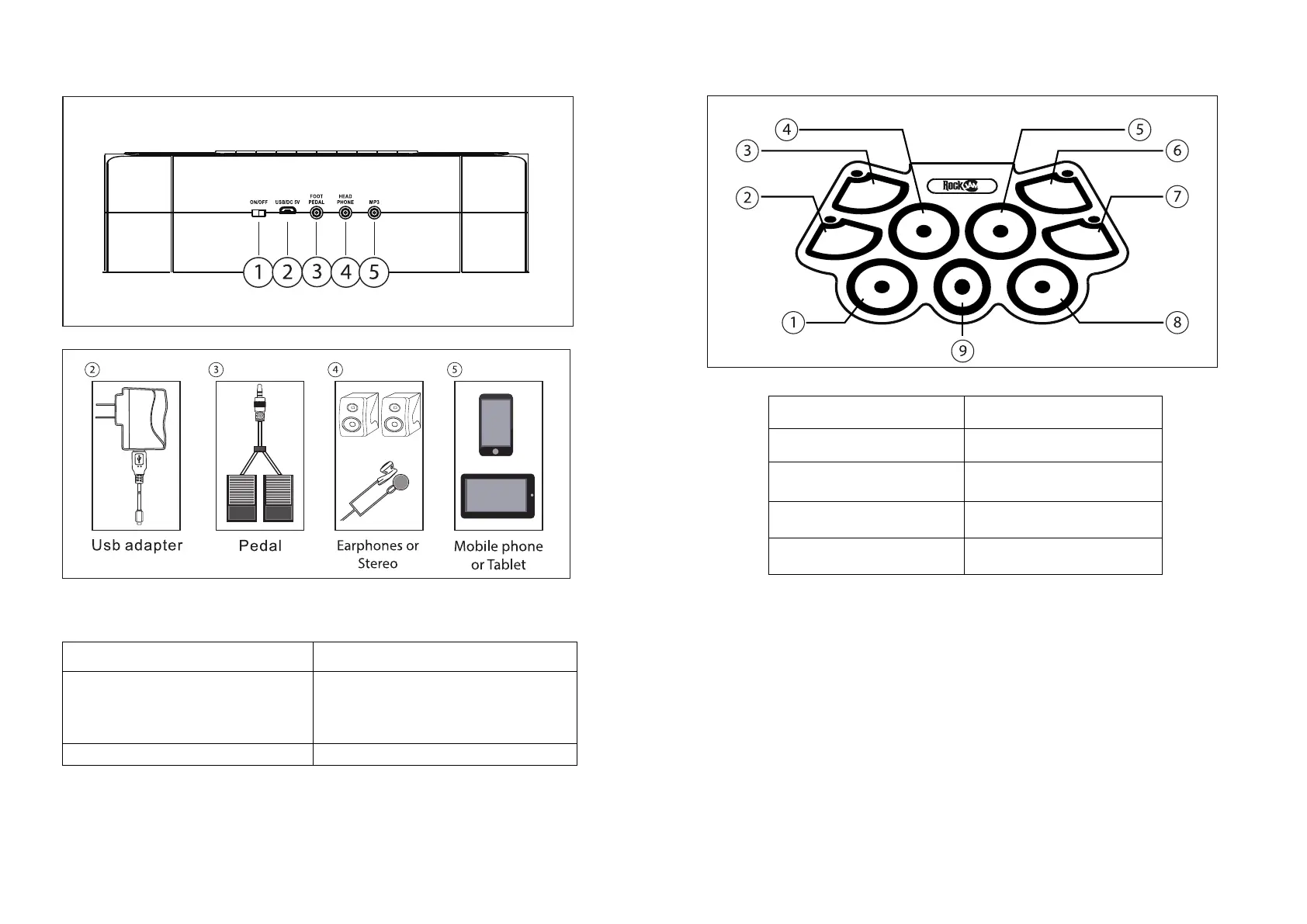 4 – High tom 9 - Bass drum
