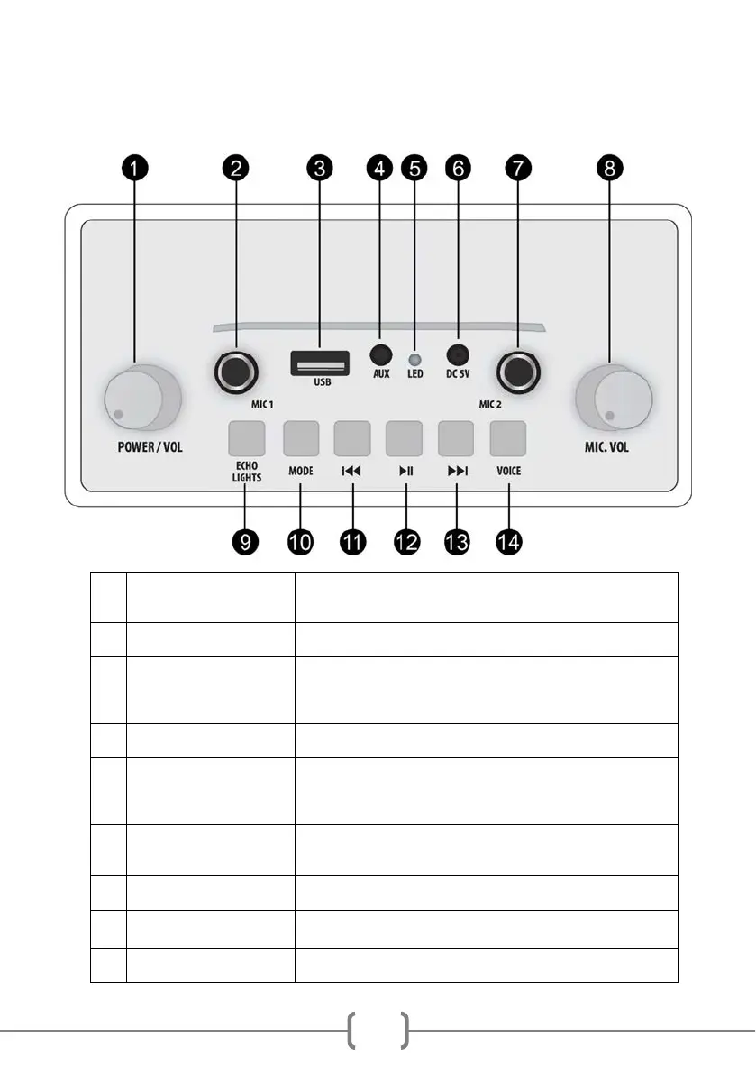 Turn to adjust the output volume of the plugged-in microphone/s