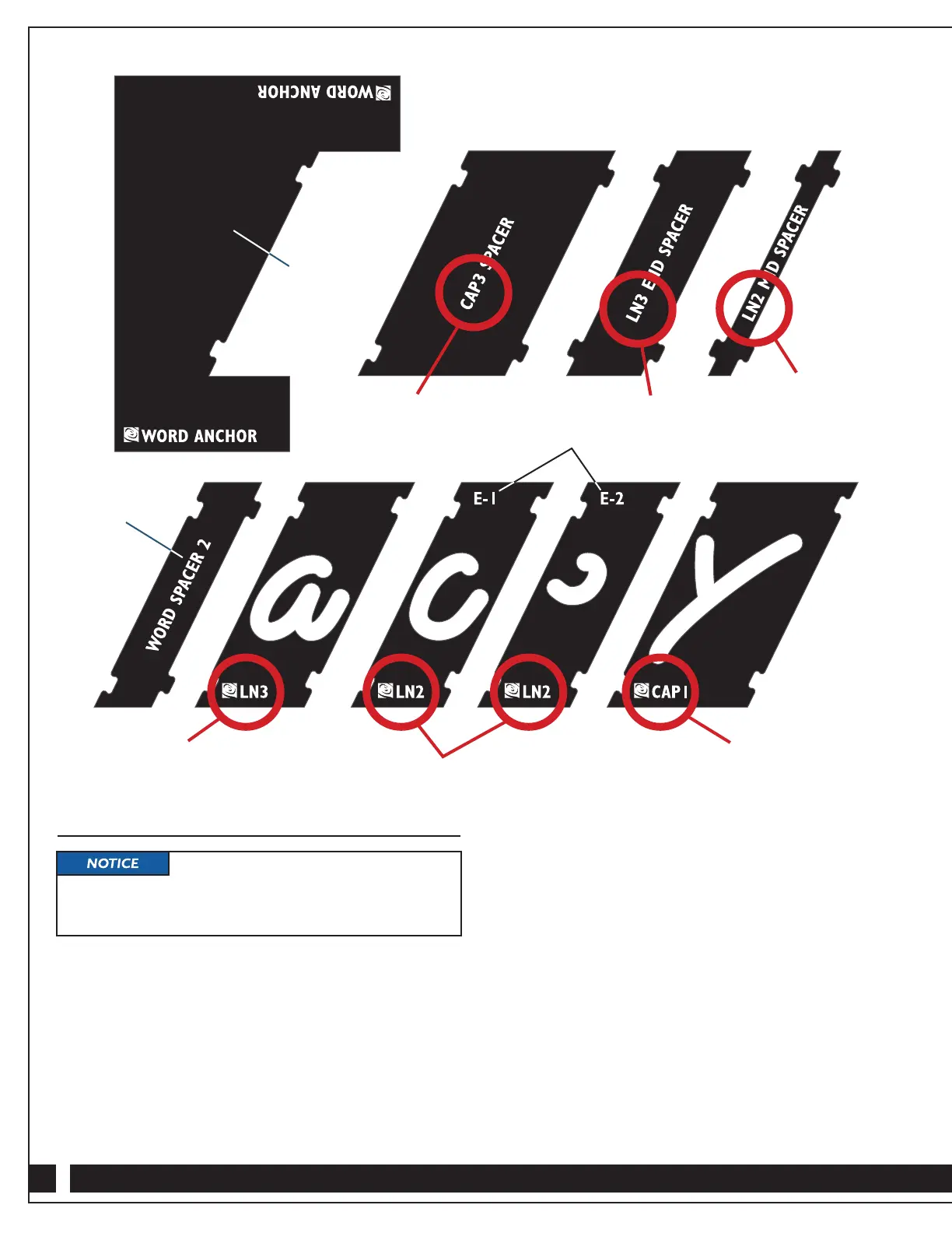 • Lowercase Mid Spacers, which are used for letters