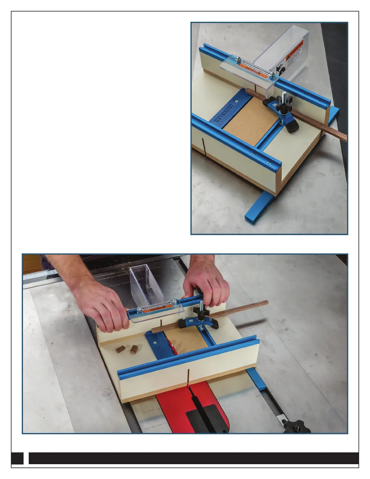 Guard. Push the sled forward to make the cut, stopping when