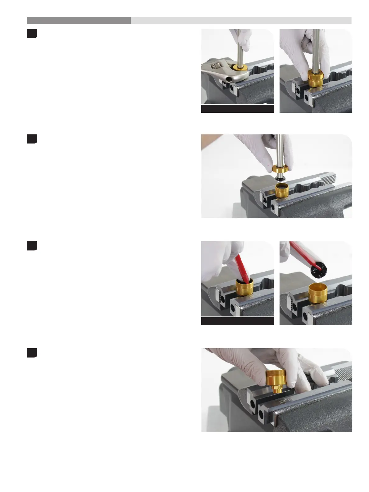 Clamp the lower ButterCup housing into a vise with Reverb Vise Blocks Clamp the lower ButterCup housing into a vise with Reverb Vise Blocks