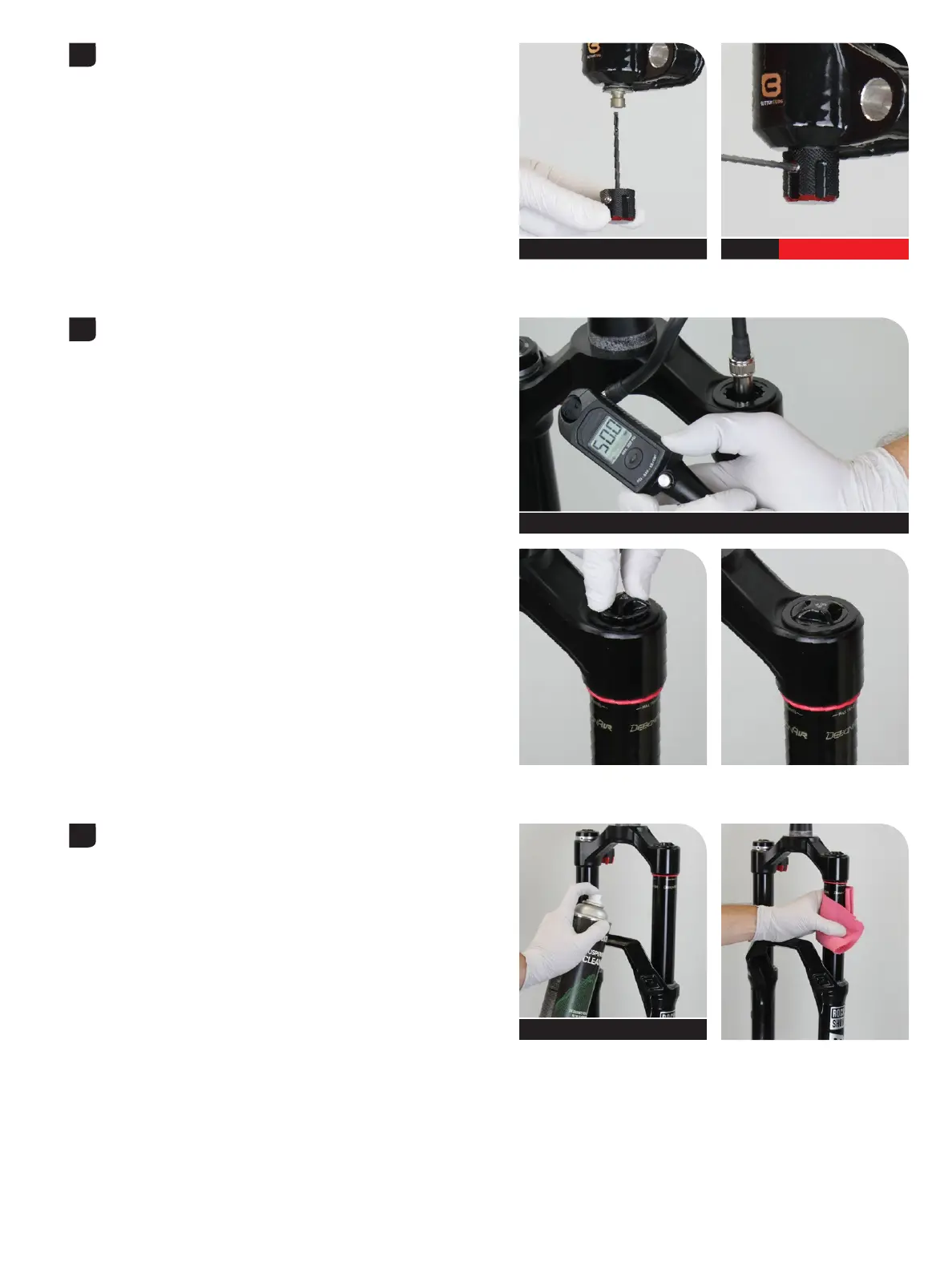 chambers. After the fork is cycled 3-4 times, check the pressure and chambers. After the fork is cycled 3-4 times, check the pressure and