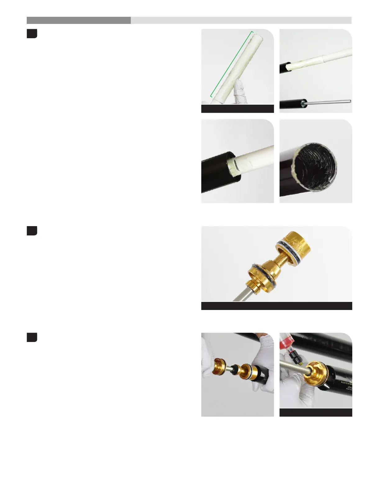 Insert the air spring assembly into the upper tube. Firmly push the air Insert the air spring assembly into the upper tube. Firmly push the air