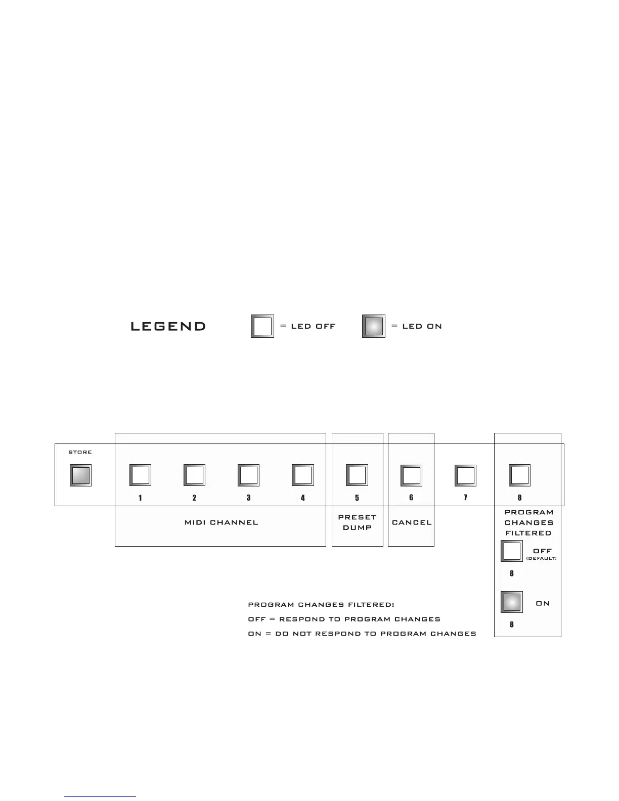 1. Press and hold the STORE BUTTON until it begins blinking then release it to enter the MIDI CON