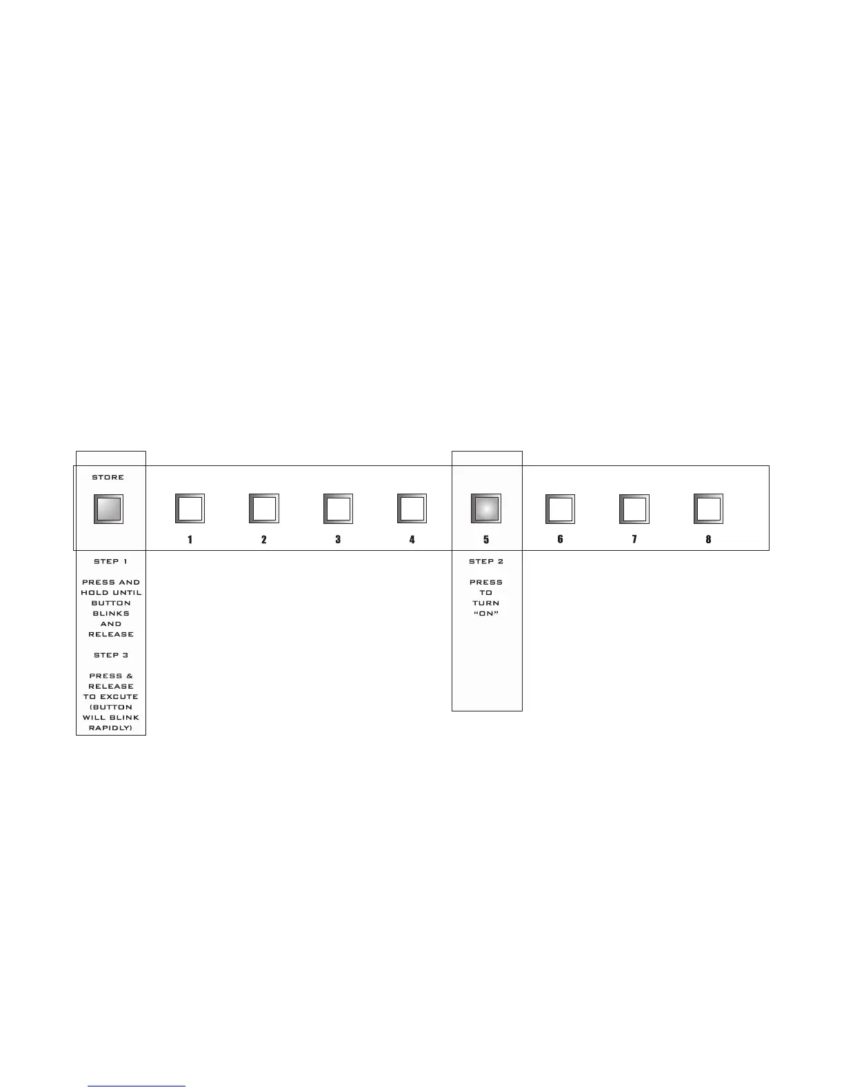 1. Press and hold the STORE BUTTON until it begins blinking then release it to enter the MIDI CON