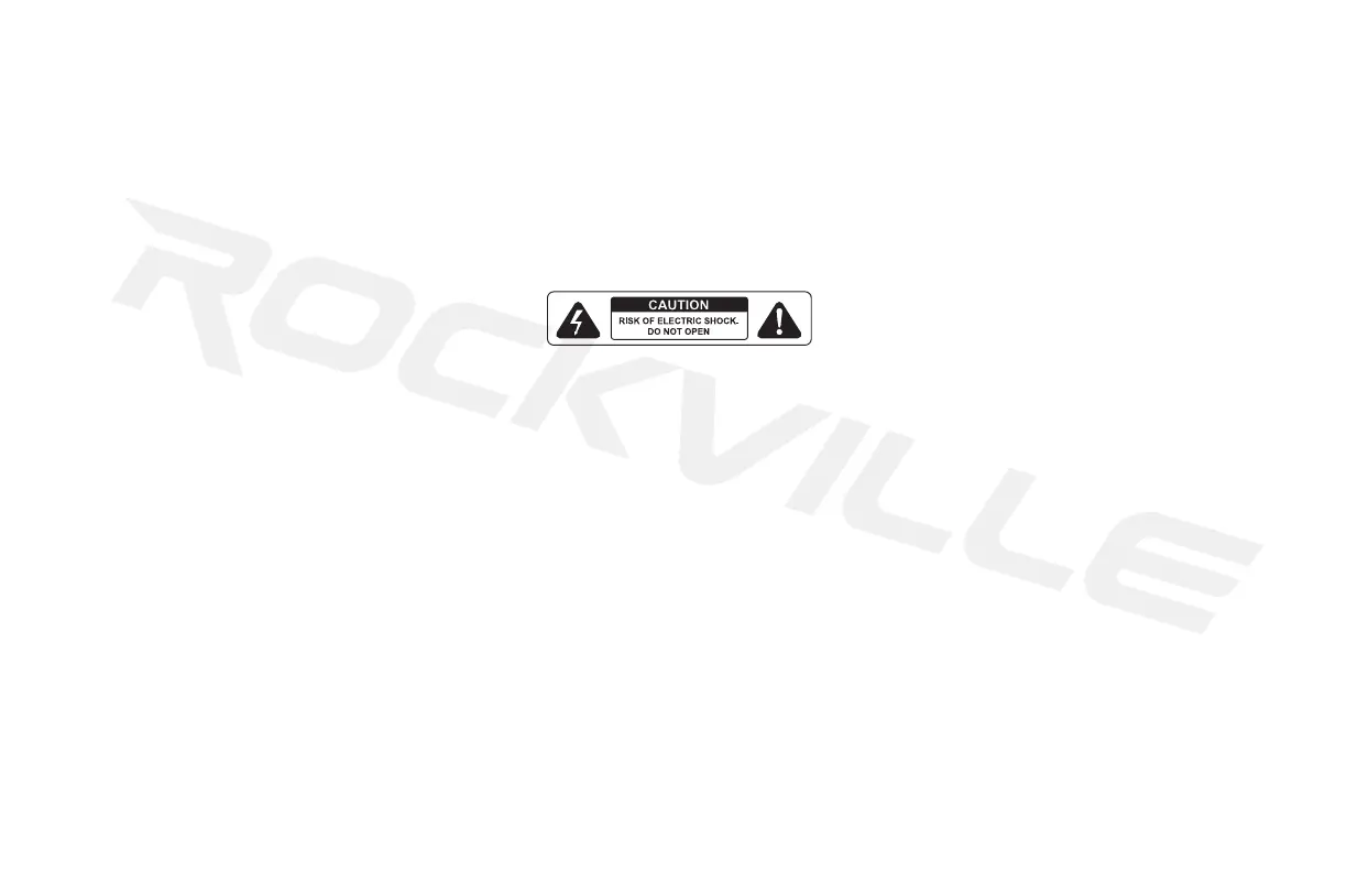 • To reduce risk of electric shock, never open the unit. There are no user serviceable parts, refer service to an authorized Rockville service center.