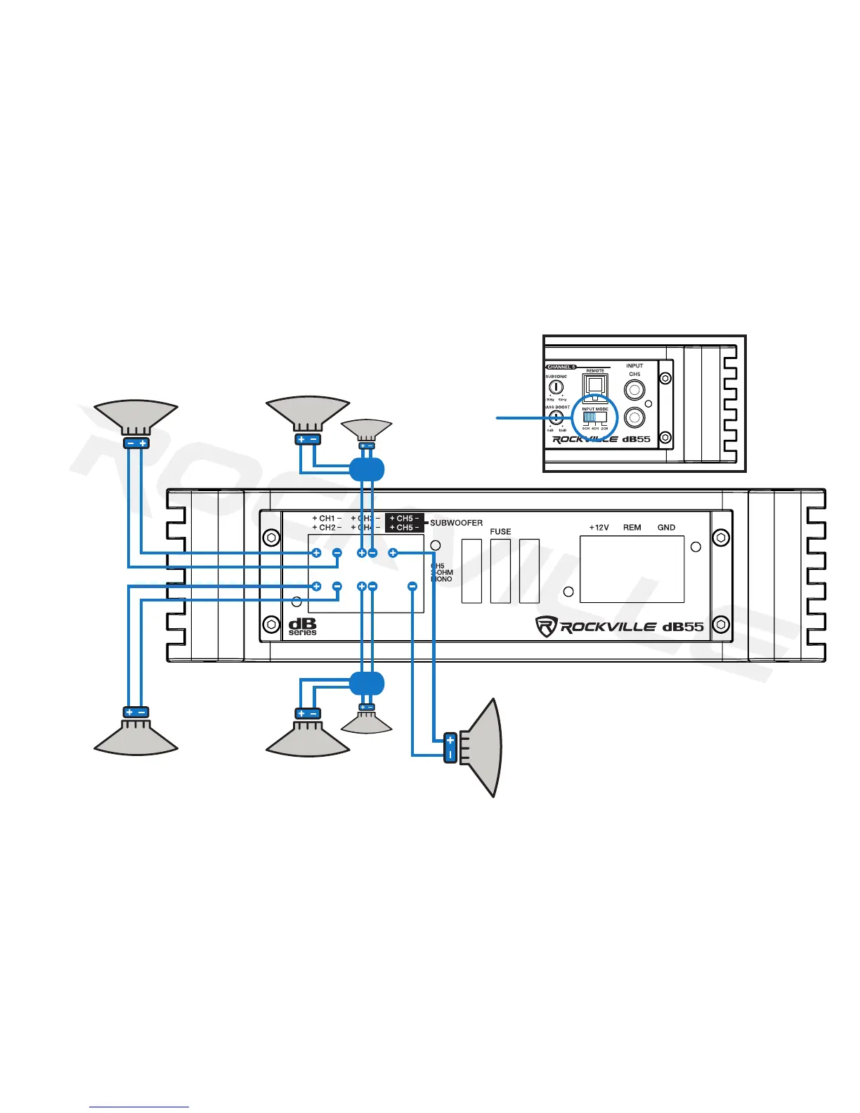 Rockville dB13 - 5 Channel Amp Speaker Wiring