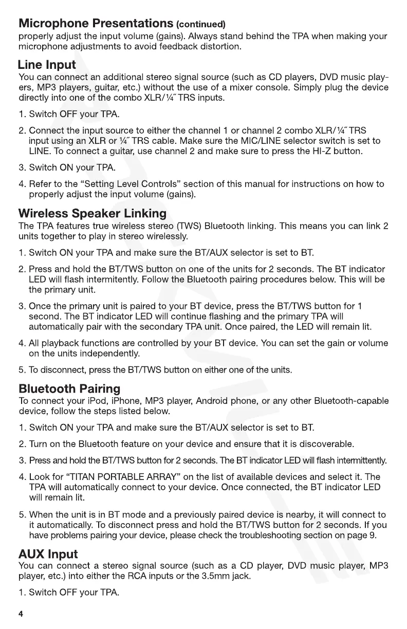Rockville TITAN PORTABLE ARRAY - Wireless Speaker Linking; TWS Bluetooth Linking Procedure; Bluetooth Pairing; Bluetooth Device Pairing