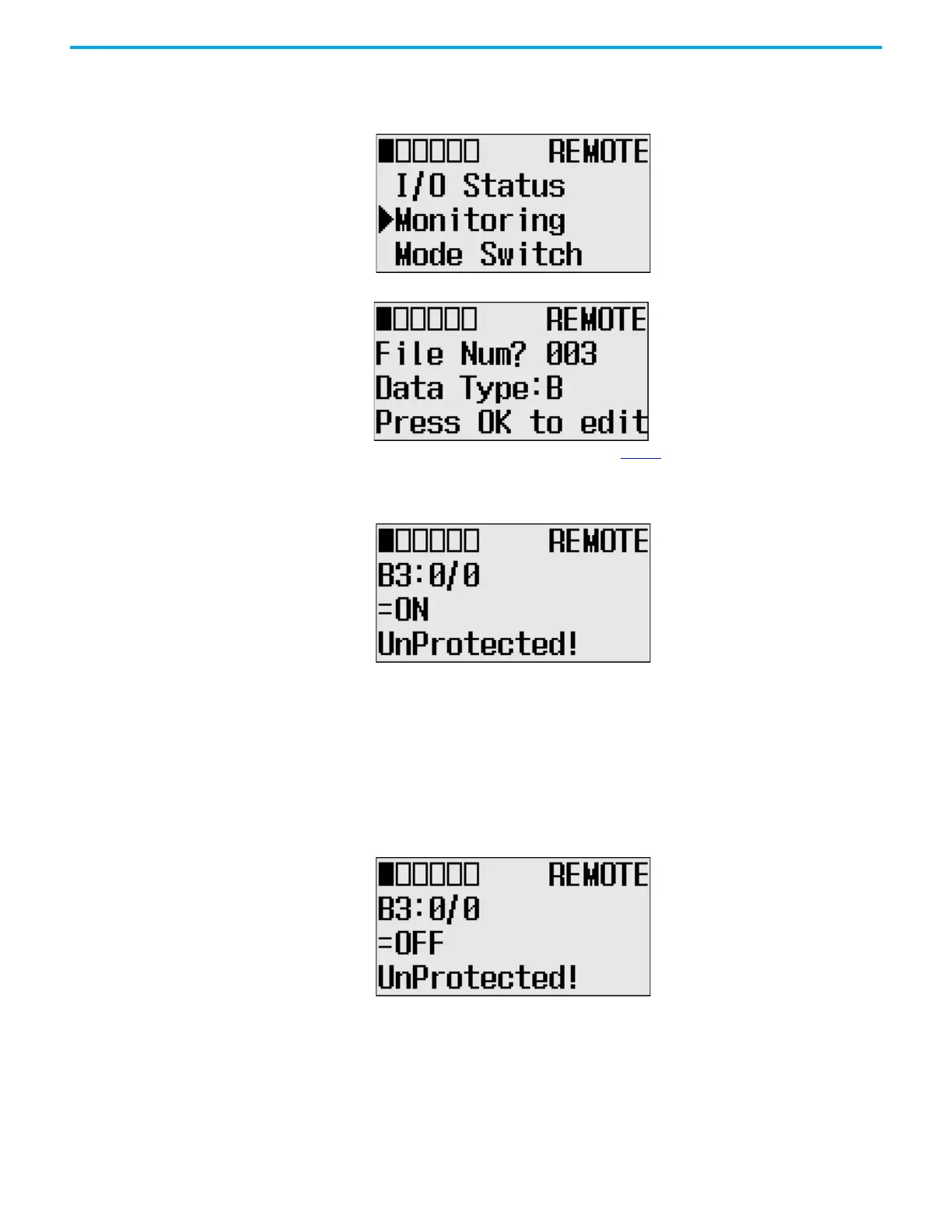 5. To change the data value of the B3:0/0 bit to OFF (0):