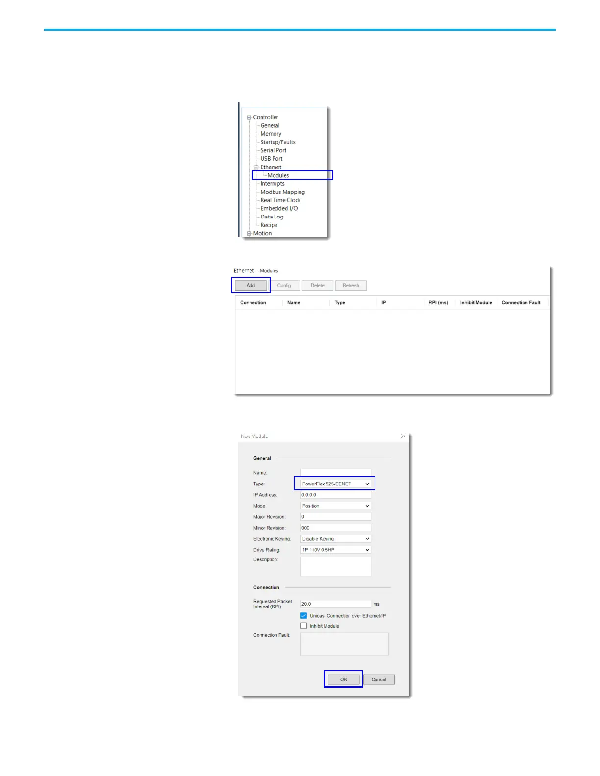 1. Choose Modules under the Ethernet branch in the device configuration tree.