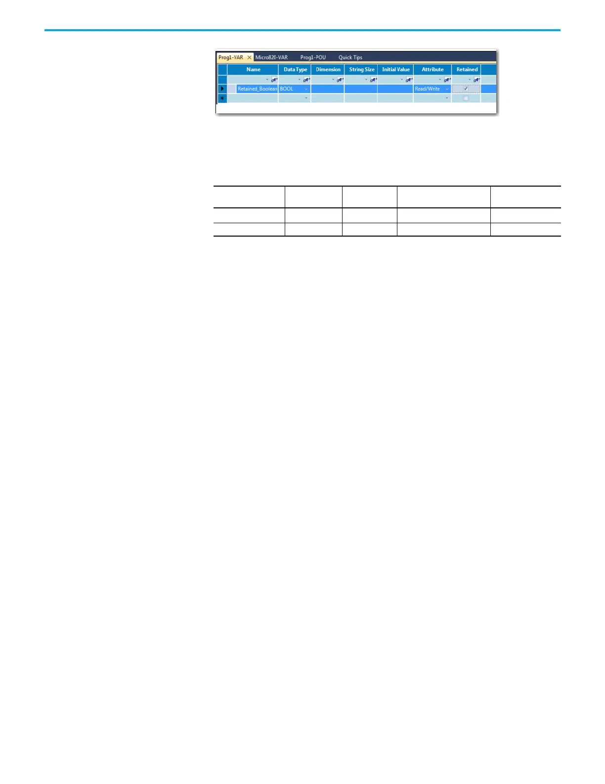 Memory Allocation Depending on base size, available memory on Micro800 controllers are shown in the table