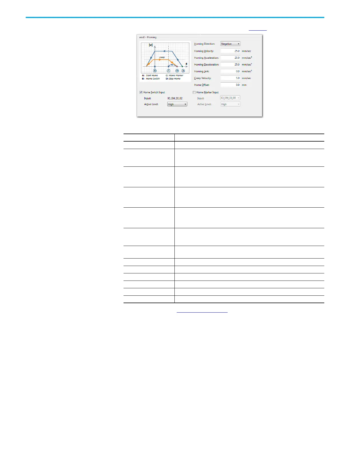 4. Set Homing parameters based on the description in Table 33. Click Homing.