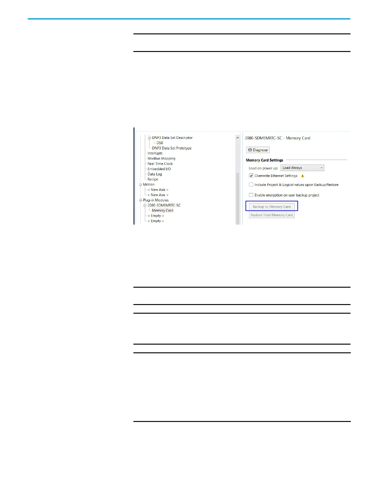 Project Backup and Restore Project backup and restore on Micro830, Micro850, and Micro870 controllers are mainly