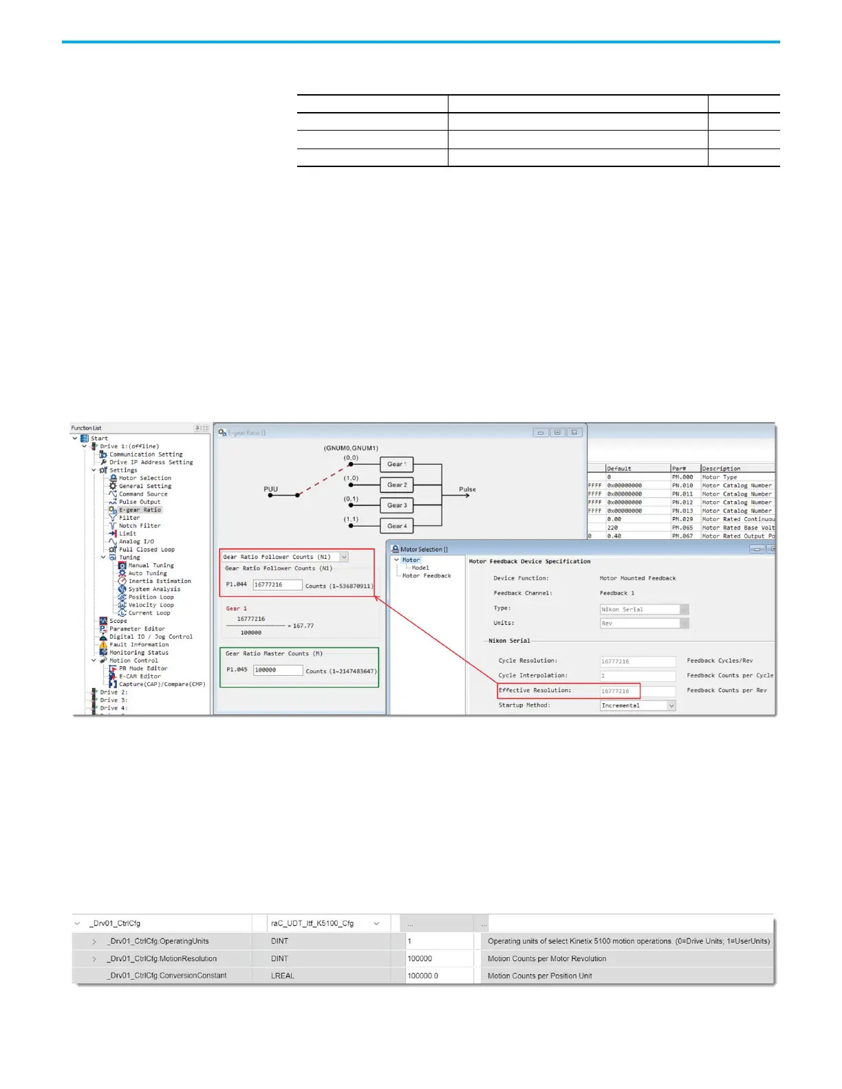 of using drive counts. In KNX5100C software, the E-gear ratio is defined to provide Position