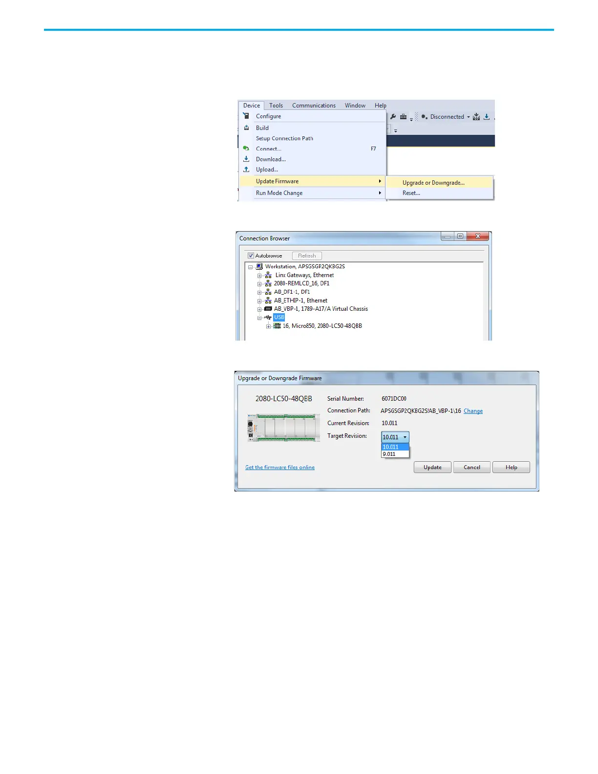 3. In the Upgrade or Downgrade Firmware dialog box, select the desired Target Revision to
