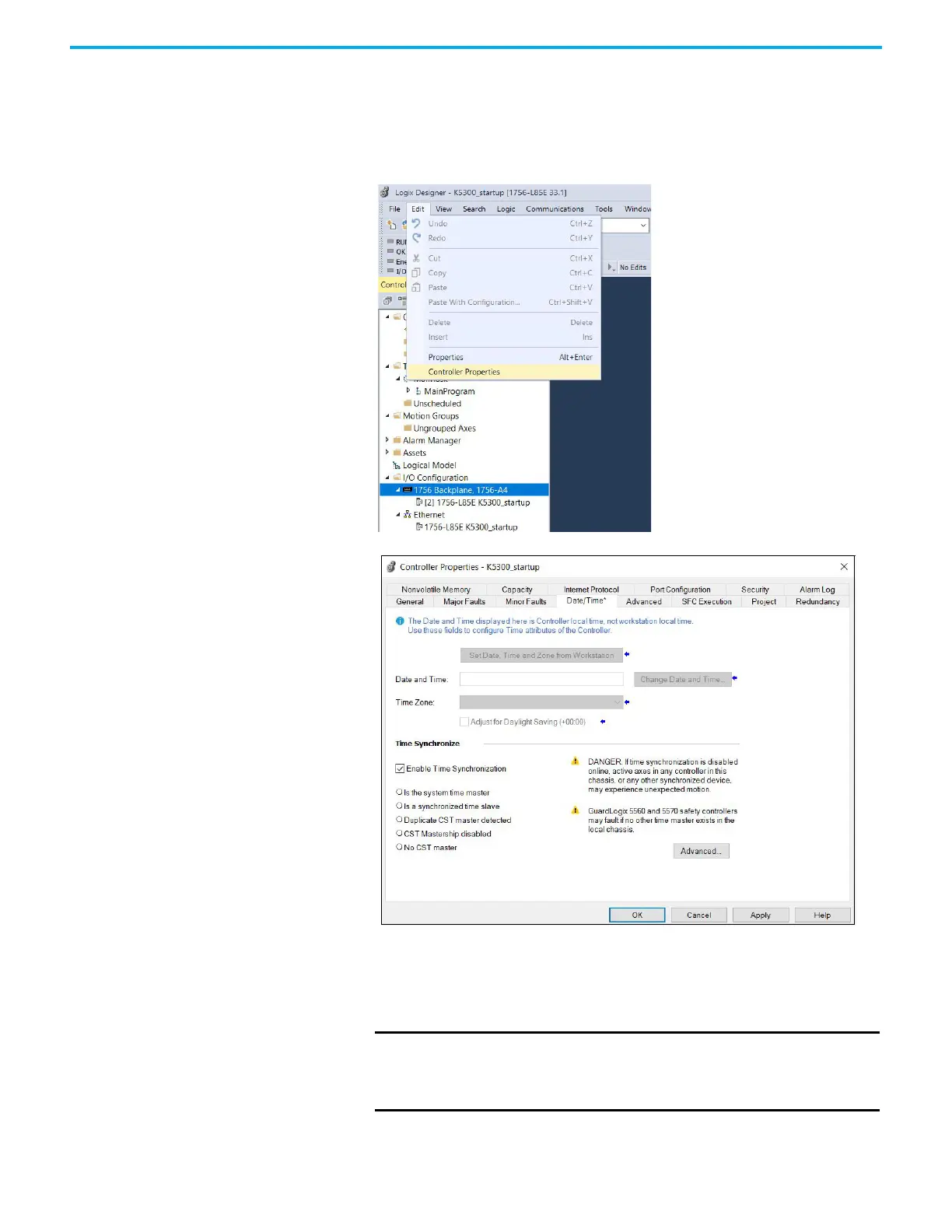 IMPORTANT Check Enable Time Synchronization for all controllers that participate