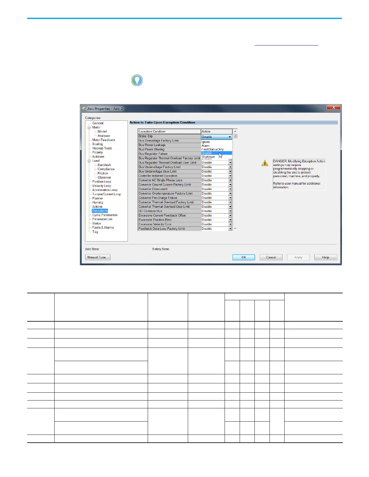 Figure 59 - Logix Designer Axis Properties - Exceptions Category