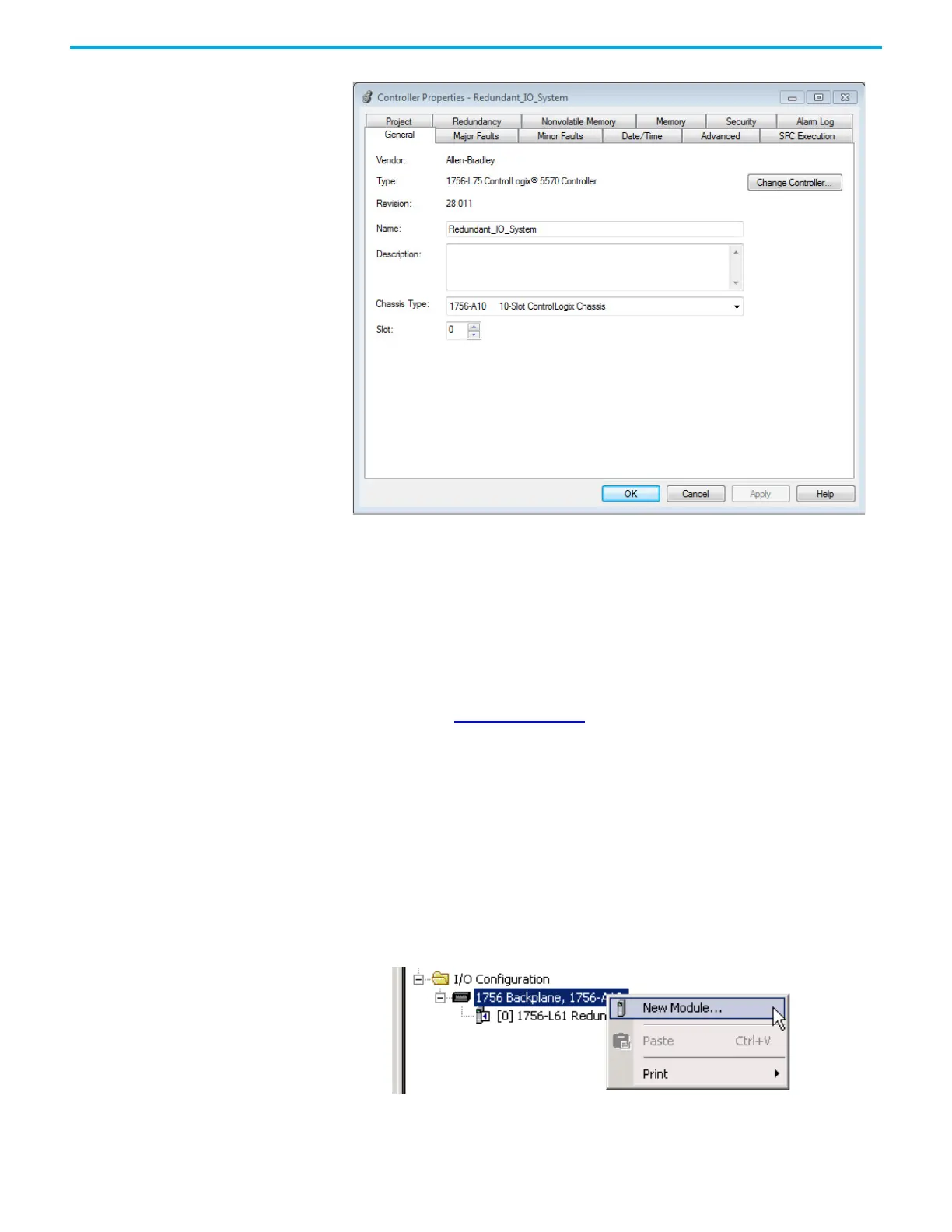 1. In the Logix Designer project, right-click the 1756 backplane in the I/O