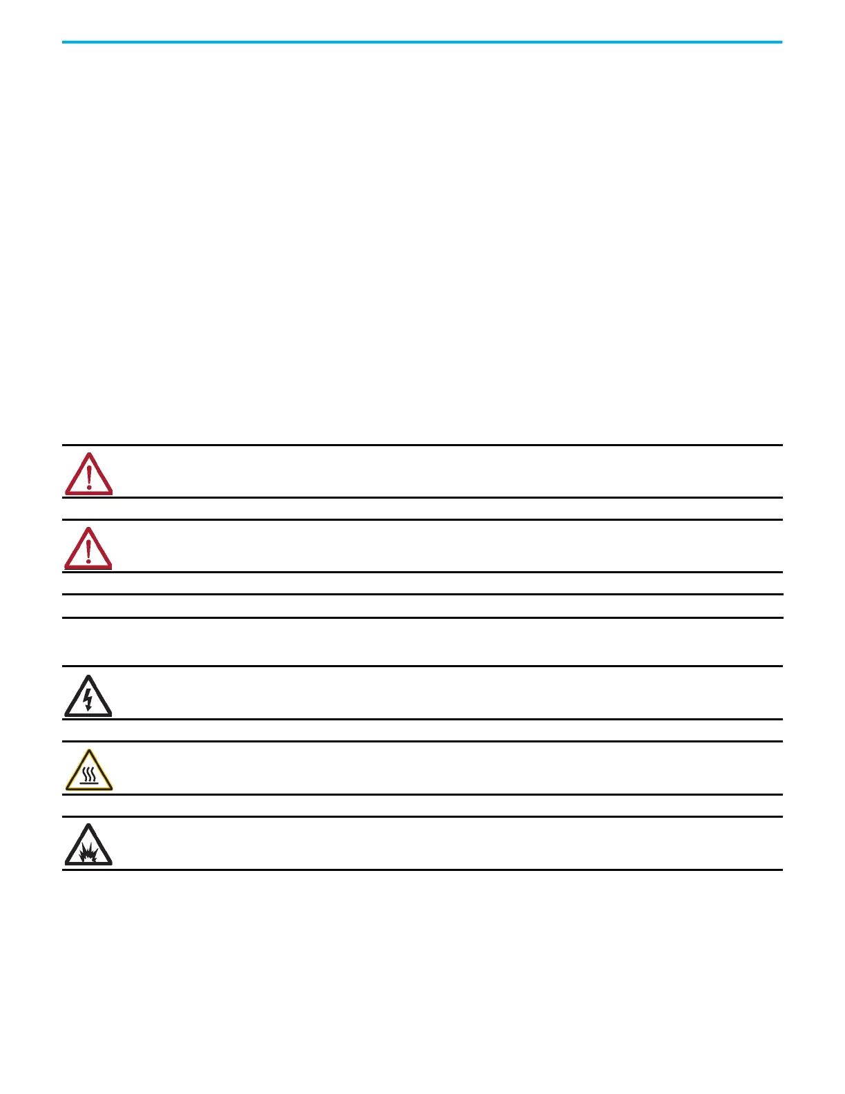 WARNING: Identifies information about practices or circumstances that can cause an explosion in a hazardous environment,