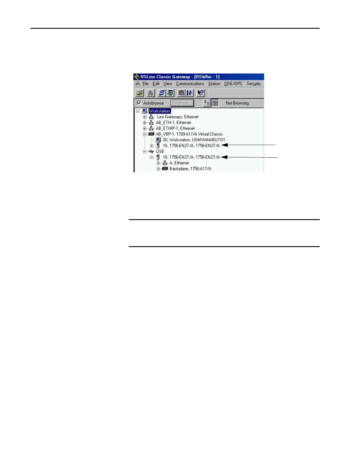 Your 1756-EN2T module appears under two different drivers, a virtual