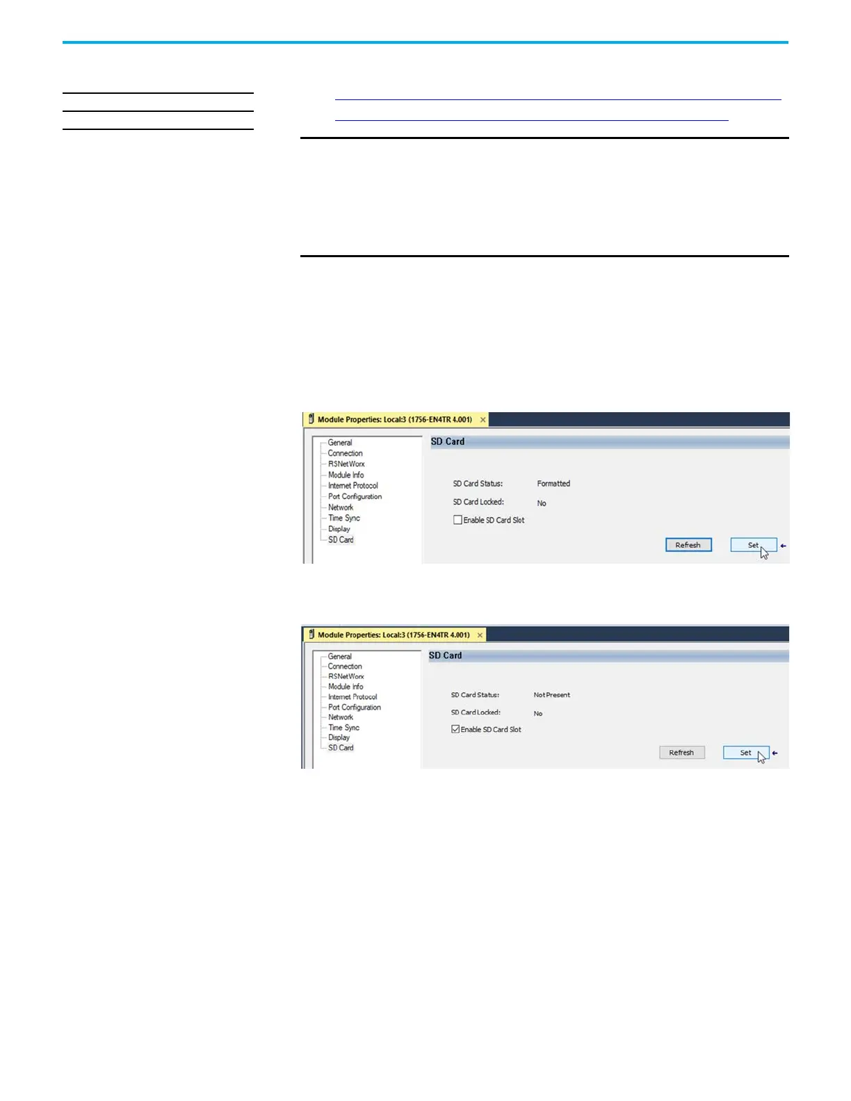 • Disable/Enable the SD Card on the Module Properties Dialog on page 51