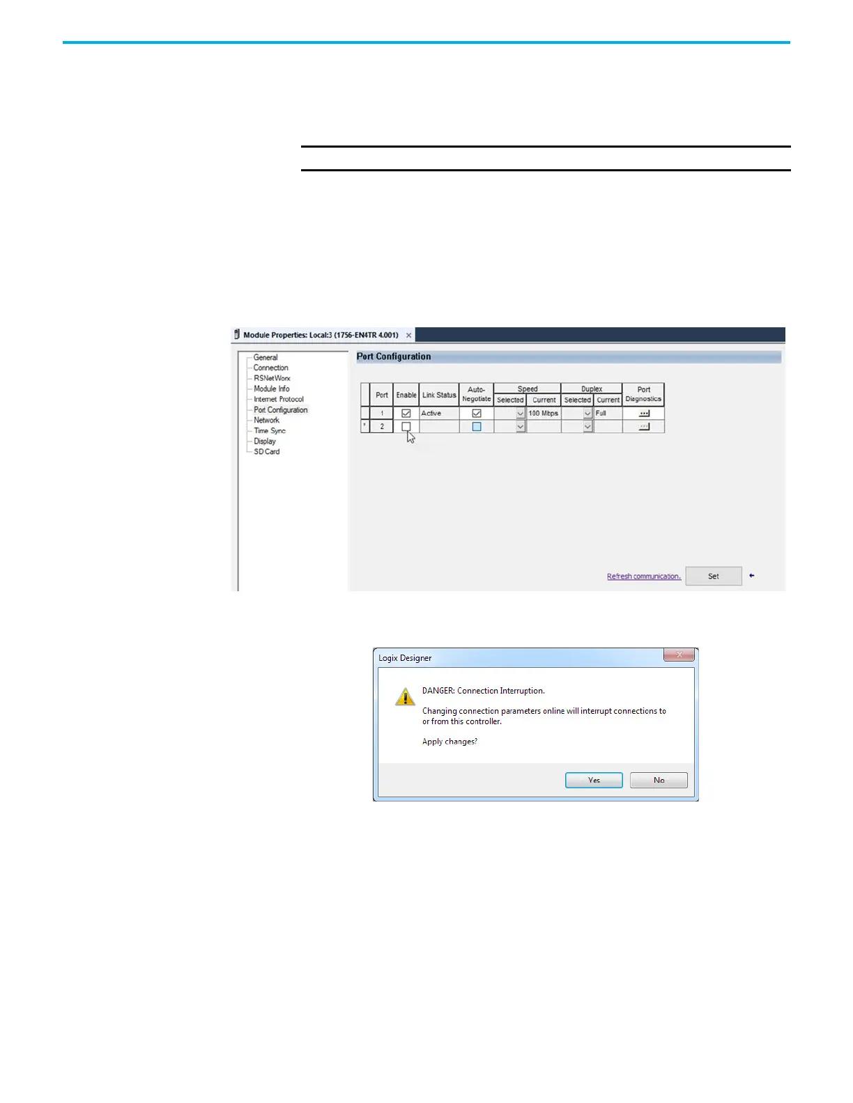You can disable or enable an Ethernet port with the Studio 5000 Logix