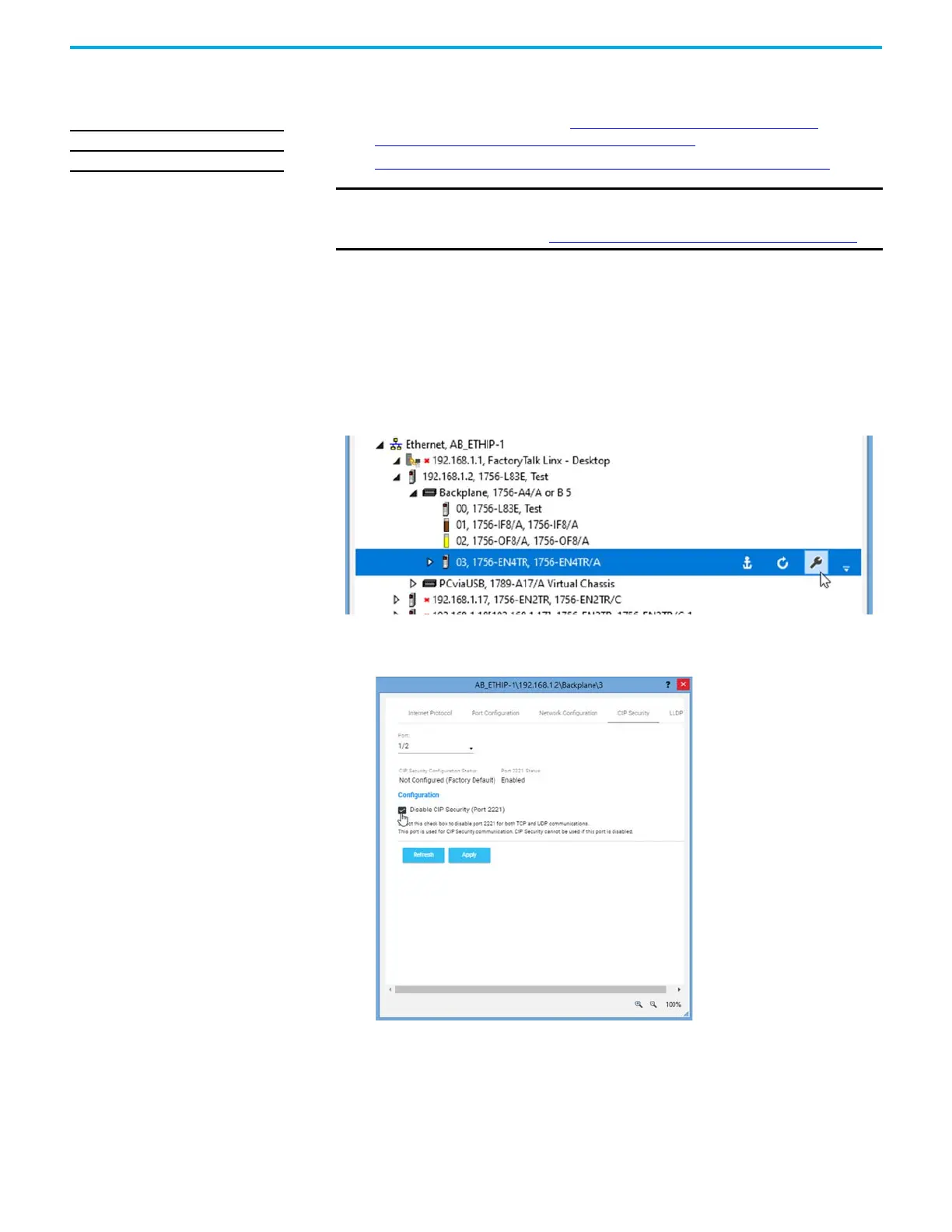IMPORTANT These procedures disable the CIP Security ports. To re-enable the ports,