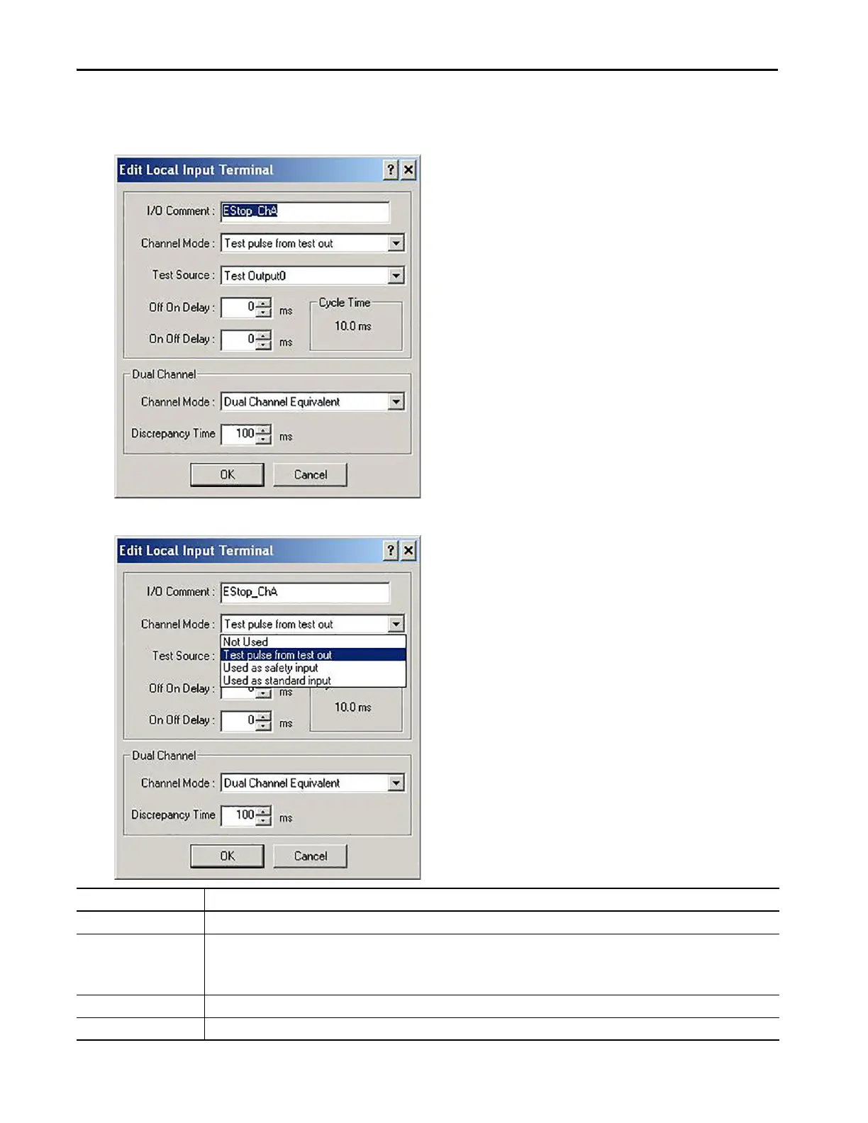 Test pulse from test output Use this mode when you are achieving a Category 4 input circuit. This mode assumes that you have connected your input device to a Pulse Test