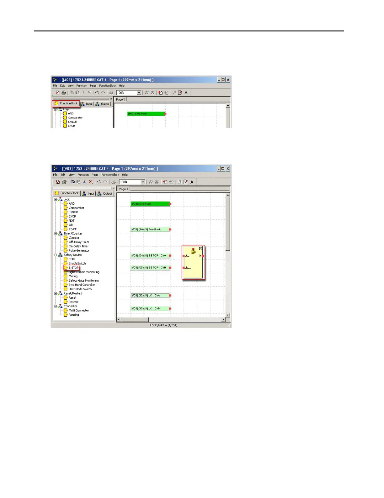 For this example, we added the E-STOP safety device block to the Logic Editor page.