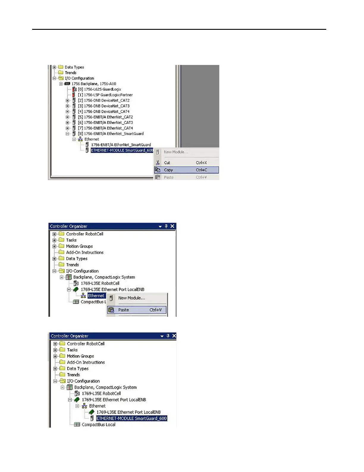 3. Right-click ETHERNET-MODULE SmartGuard_600 and choose Copy.